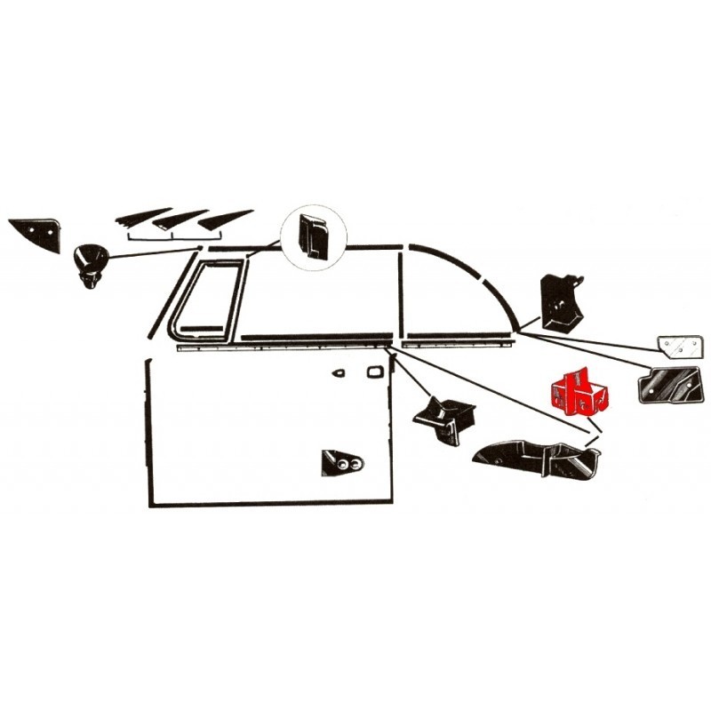 Guarnizione angolo anteriore vetro laterale cabrio 65-72